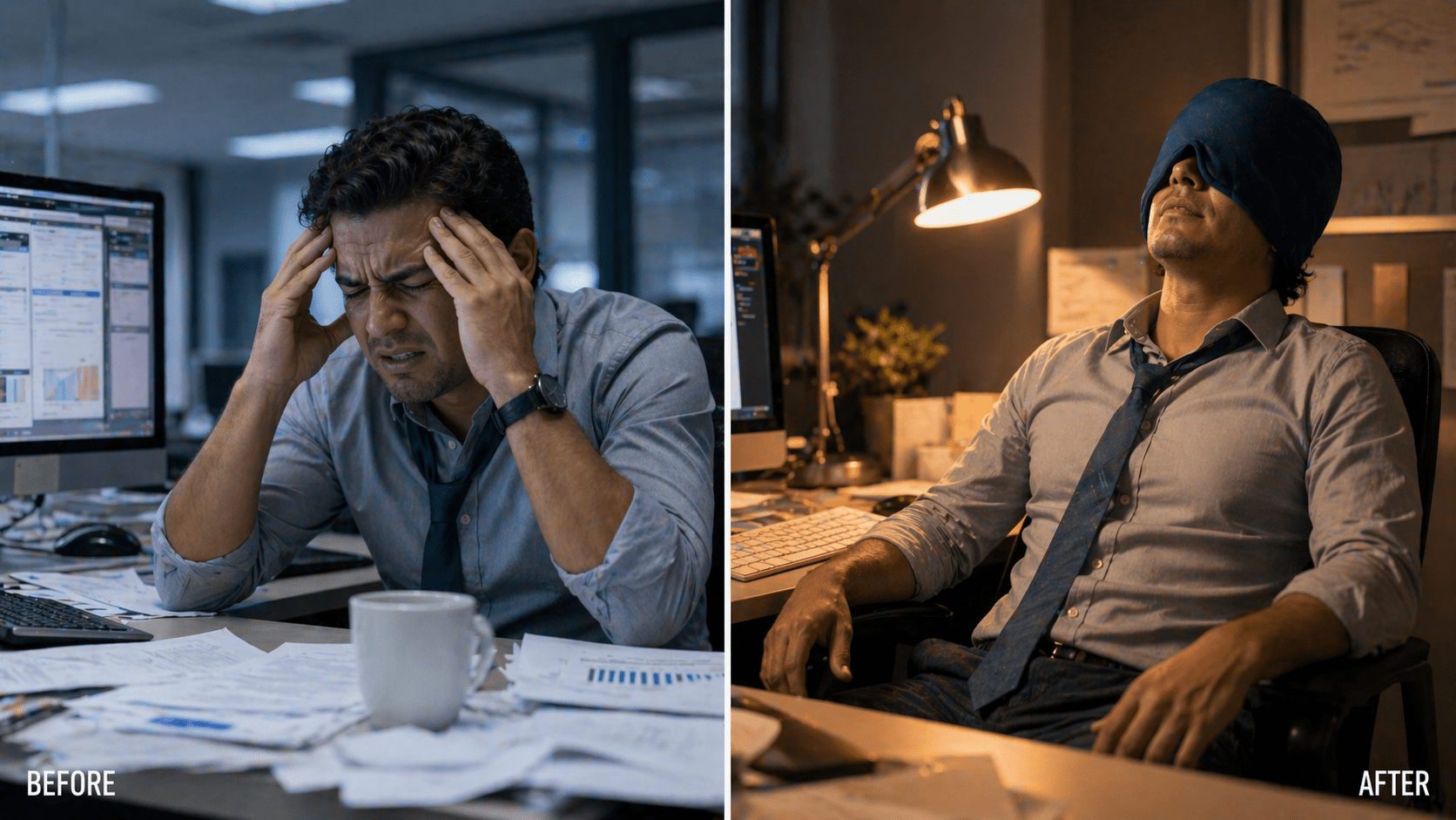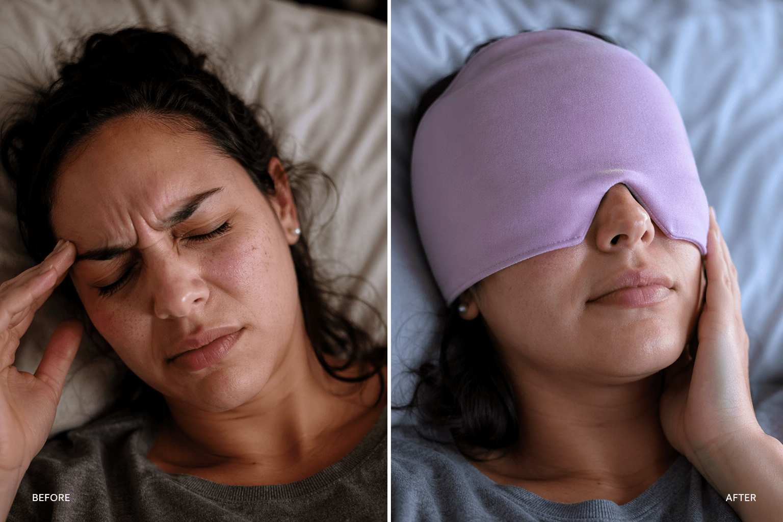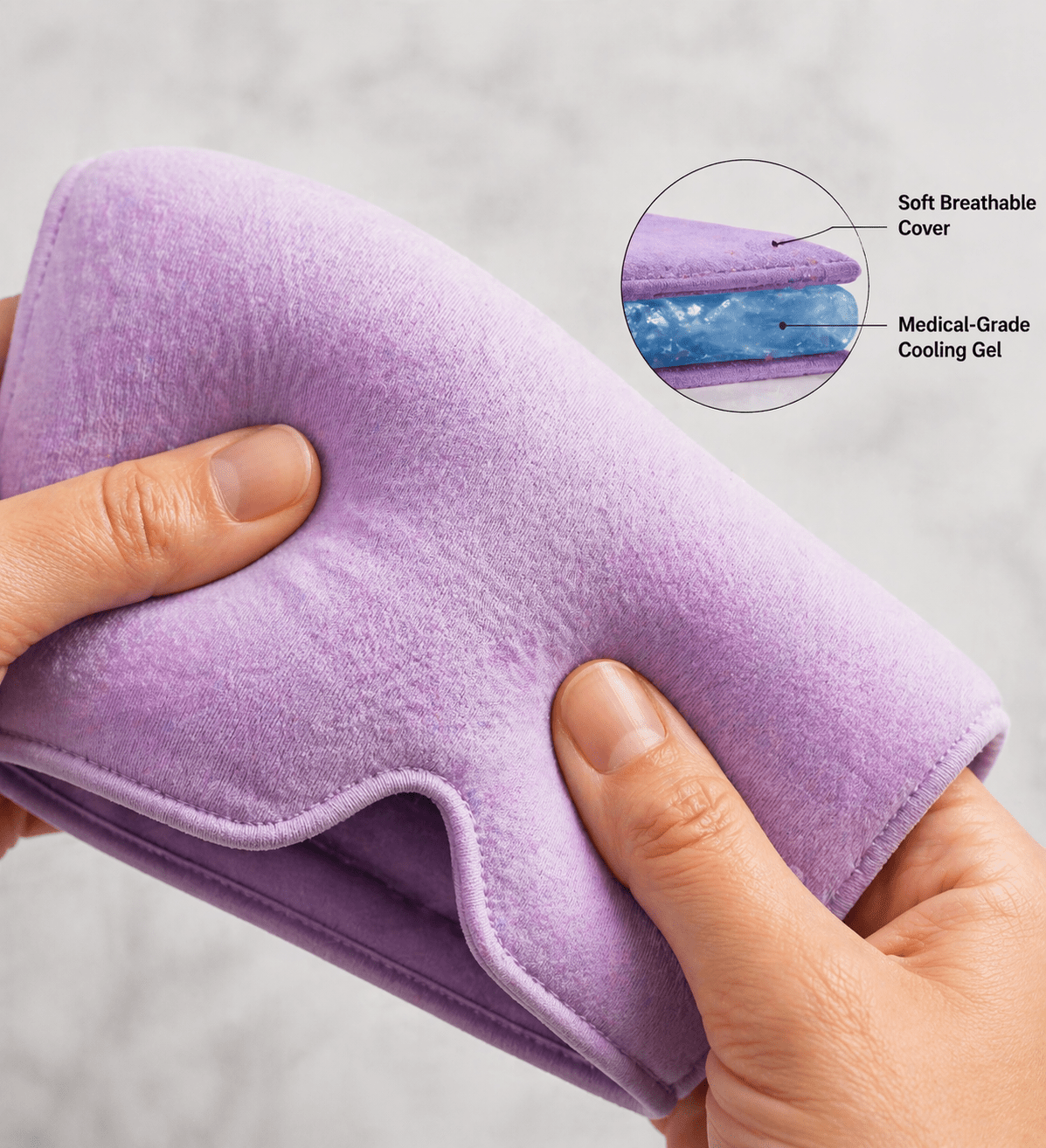 Medical-grade cooling gel. Hot or cold therapy. Blocks light completely. Drug-free relief that actually works.