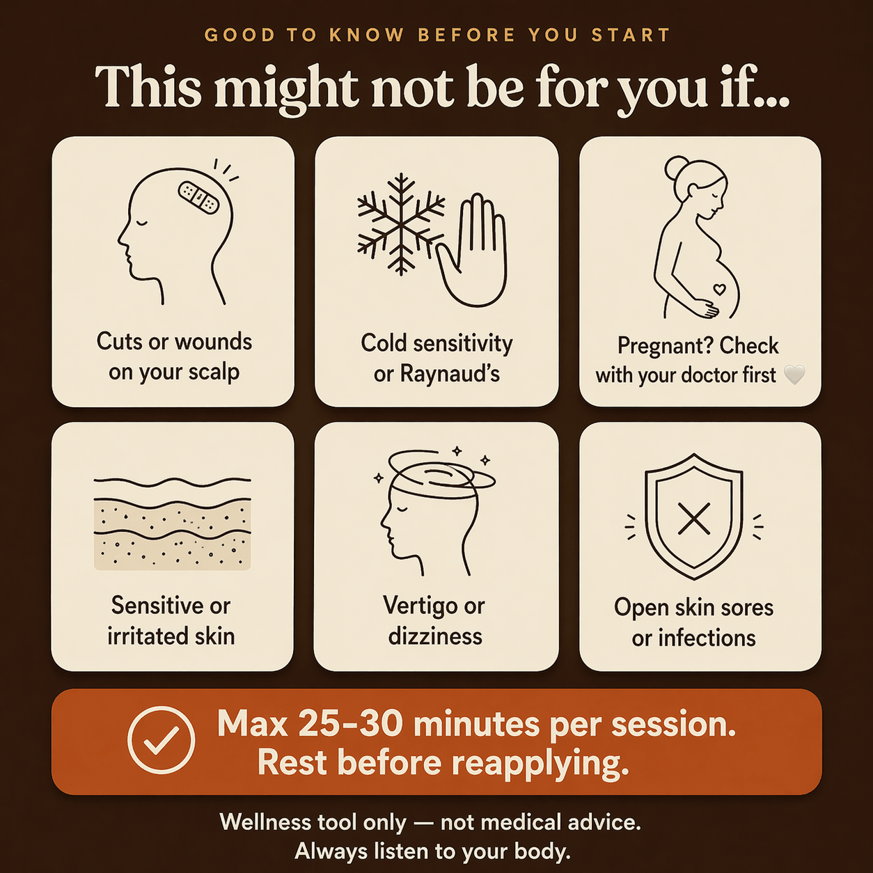 Cold therapy applied to the forehead and scalp triggers the dive reflex — an ancient physiological response that immediately slows your heart rate, reduces inflammation, and signals your body to exit fight-or-flight mode. The Monva cap cools blood vessels in the scalp, reduces inflammation, and blocks pain signals to the brain. Within minutes, not hours.