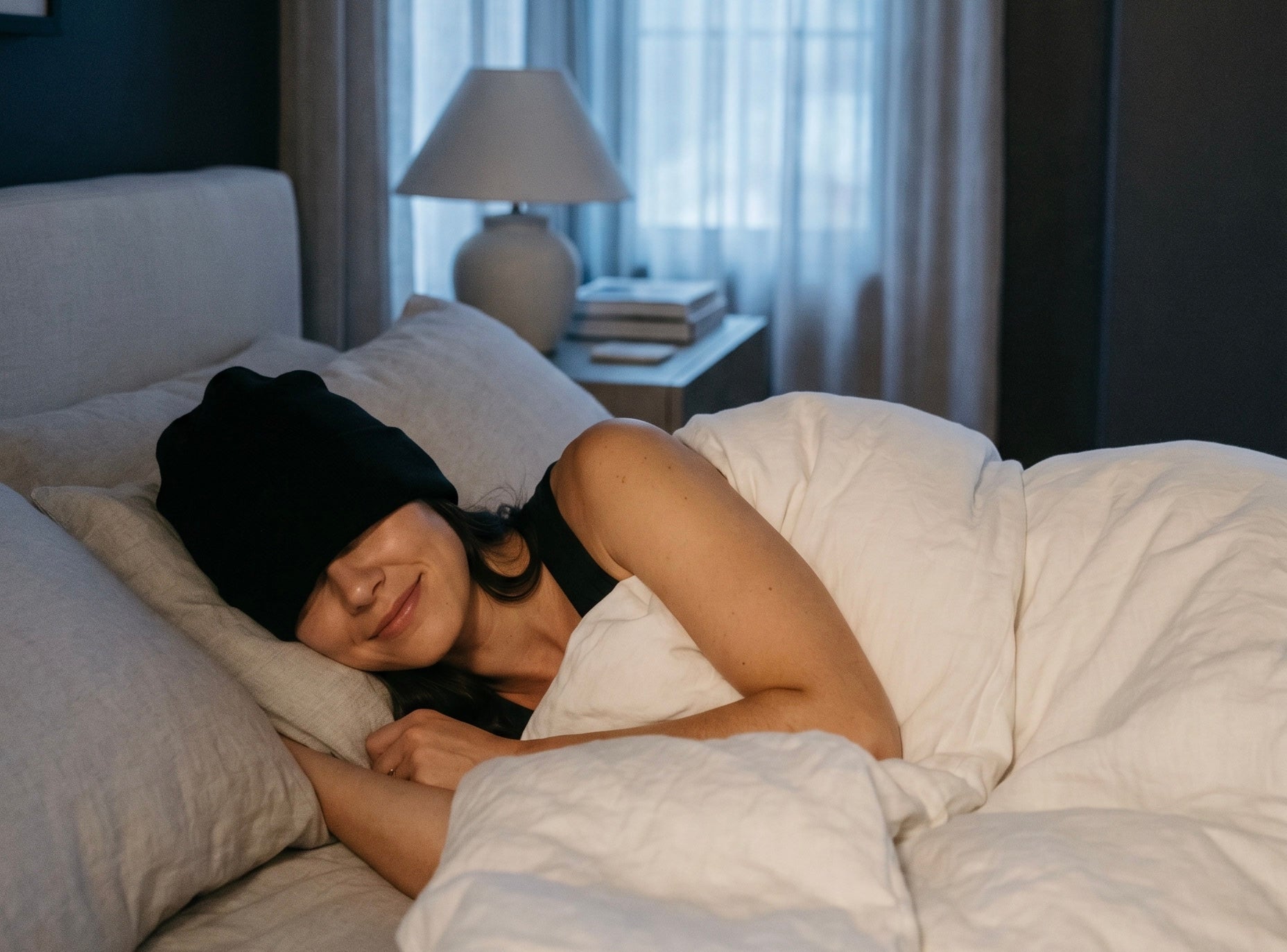 Freeze cap 1–2 hours. Slip on. Block the light. Let the cold work.